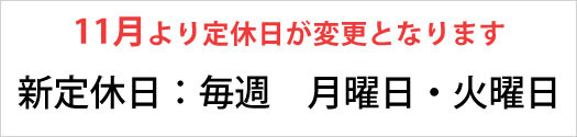 ■11月より、定休日を「毎週 月曜日・火曜日」に変更いたします 2025.10.31 |